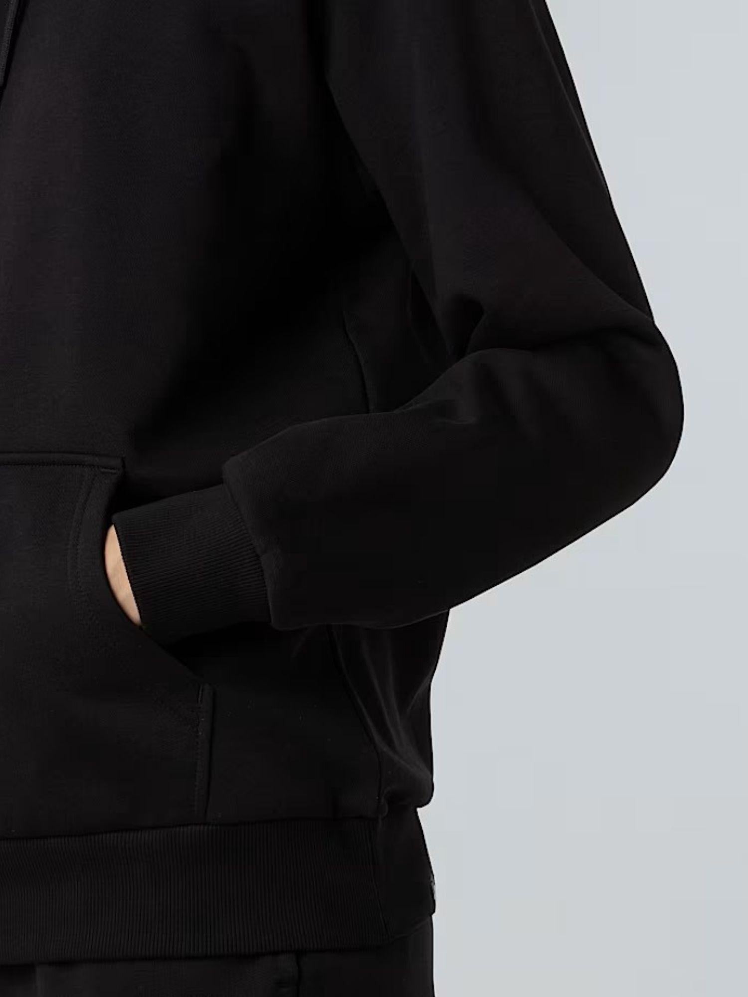 The Simple Dome hoodie features a regular fit, a subtle Half Dome logo on the chest, and a kangaroo pocket to warm your hands. This classic, versatile design is ideal for year-round use, perfect for outdoor adventures and leisure time. The model is 177 cm tall and wears a size S. Plain fabric: 295 g/m², 68% cotton, 32% polyester French Terry. Heathered fabric: 360 g/m², 74% cotton, 26% polyester French Terry.