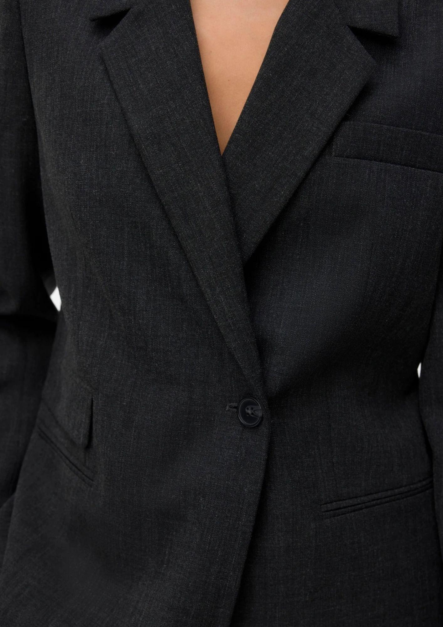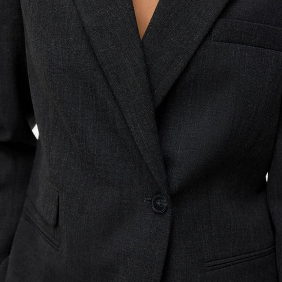 A classic and sophisticated blazer, this essential piece adds elegance and character to any outfit. Crafted from recycled polyester, it offers comfort, structure, and a regular fit perfect for any occasion. It features a turndown collar, button closure, and functional front pockets, while the polyester lining ensures a pleasant feeling of comfort. Ideal for pairing with a t-shirt, loose-fitting jeans, and heels for a refined everyday look. Composition: 50% recycled polyester, 43% polyester, 5% viscose, 2% elastane.