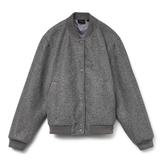 This crew-neck bomber jacket features an elegant and timeless design, ideal for adding a modern and refined touch to any outfit. Crafted from a recycled polyester blend, it combines comfort, style, and a focus on sustainability. Featuring long sleeves, a snap button closure, and functional front pockets, the cropped fit and polyester lining ensure a comfortable and refined fit. Main fabric composition: 50% polyester, 50% recycled polyester.
