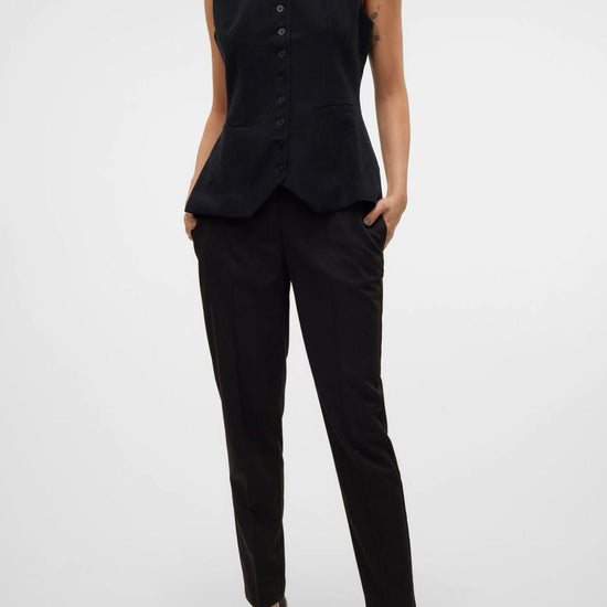 These elegant and versatile tapered-fit formal trousers are ideal for any occasion. Perfect for a refined office look or a more casual style with sneakers and a t-shirt, they offer a comfortable and refined fit. The mid-rise design with a button, hook and zip closure, front pockets, and belt loops combines practicality and contemporary style. Main fabric composition: 50% recycled polyester, 30% polyester, 18% viscose, 2% elastane.