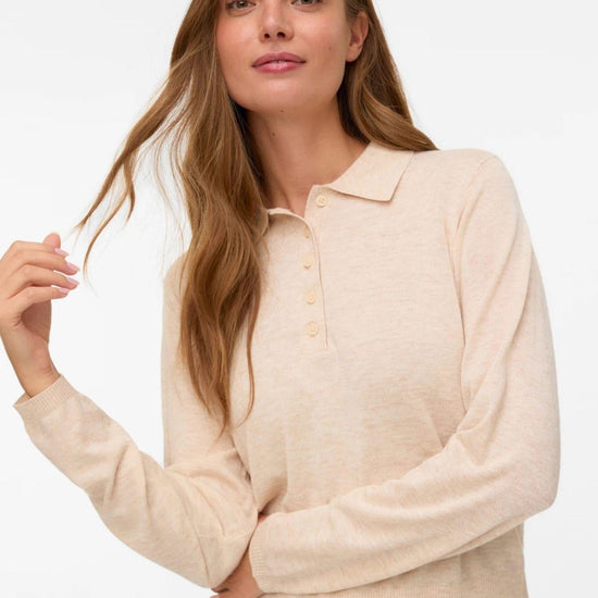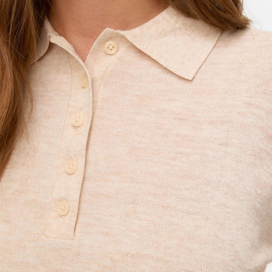 A polo top with a simple, contemporary design, perfect for everyday wear for a casual yet refined look. Crafted from quality materials from the AWARE line, it combines certified, sustainable fibers that reduce environmental impact. It features a crew neck, short, wide sleeves, a snap button closure, and a regular fit for maximum comfort. Ideal for pairing with jeans or trousers for a practical, on-trend outfit. Composition: 54% recycled polyester, 20% acrylic, 20% nylon, 6% RWS wool.