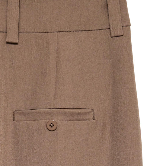 Wide-leg tailored trousers with an elegant and modern design, perfect for office looks or casual chic outfits with sneakers and a t-shirt. Crafted from a flowing polyester and elastane fabric, they offer comfort, structure, and a flattering cropped fit. Featuring a high waist, a hook-and-eye button and zip fly, front pockets, and belt loops, they combine practicality and style with a refined touch. 96% polyester, 4% elastane.