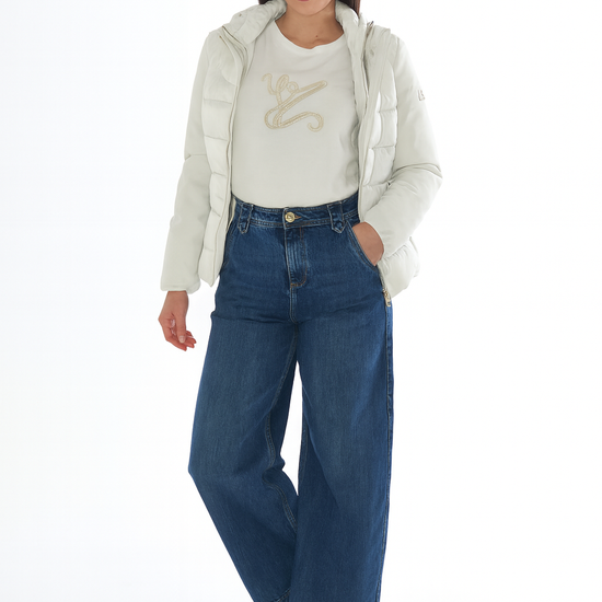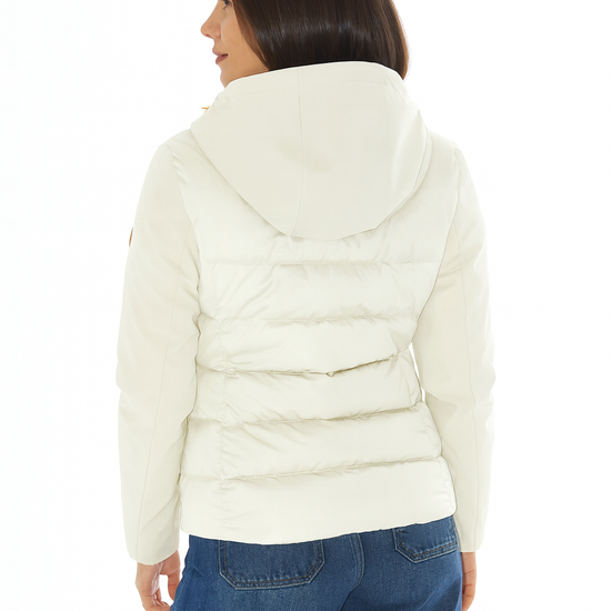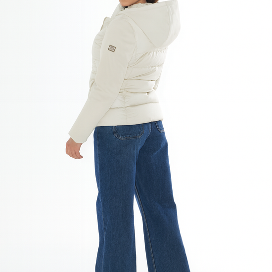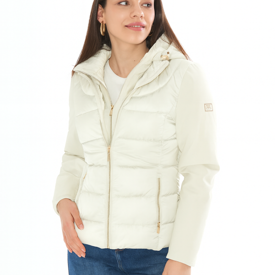 Giubbinio trapuntato con finto gilet scattabile due tasche sui fianchi e maniche lisce. 100% Poliestere
