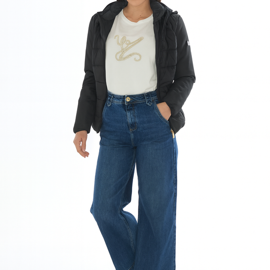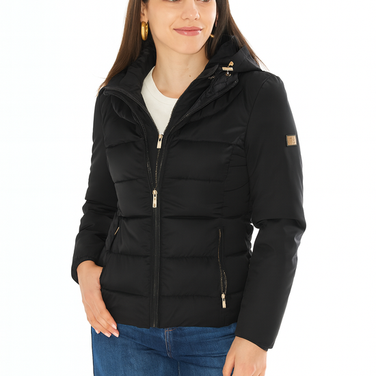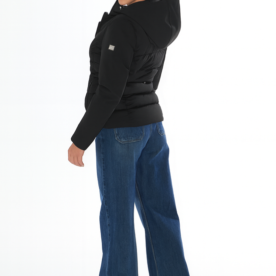 Giubbinio trapuntato con finto gilet scattabile due tasche sui fianchi e maniche lisce. 100% Poliestere