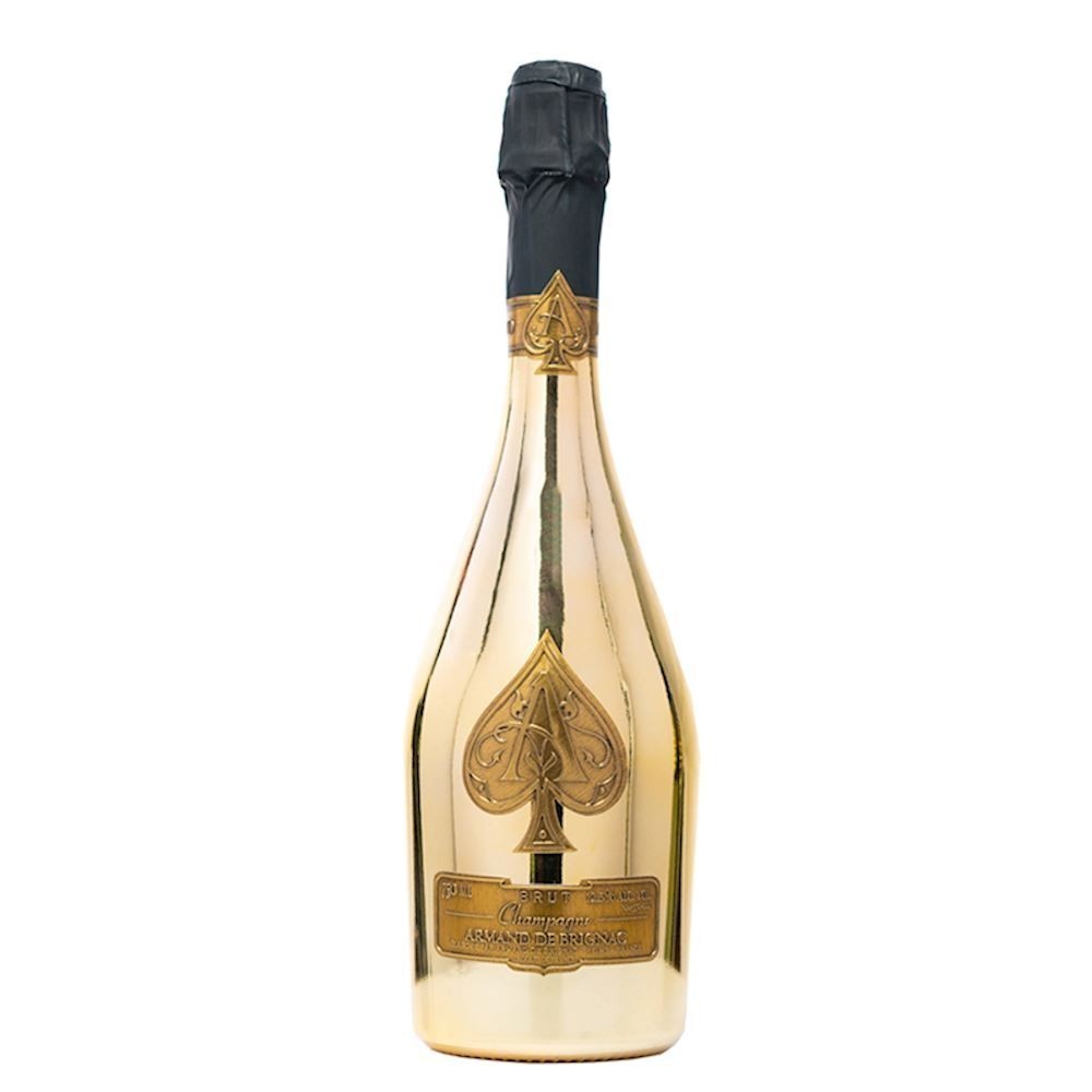 Champagne di grande prestigio, l'Armand De Brignac Gold fa parlare di sé già dal packaging, che lo vuole custodito all'interno di un'elegante scatola nera con l'inconfondibile asso di picche in oro. La bottiglia, anch'essa rivestita in oro secondo un rito manuale, racchiude l'assemblaggio delle migliori uve di Chardonnay, Pinot Nero e Pinot Meunier, provenienti dai migliori cru di Reims. Tutta la filiera produttiva è realizzata artigianalmente, dalla vendita all'etichettatura, contribuendo ad alimentare l'esclusività e la ricercatezza di uno degli Champagne più raffinati al mondo.