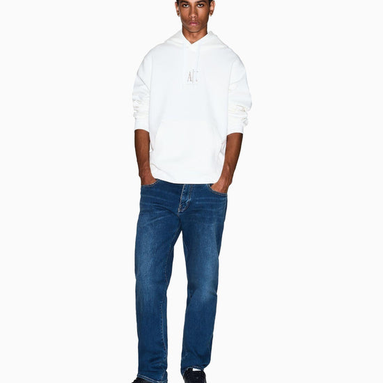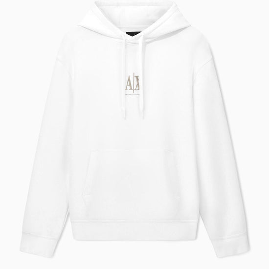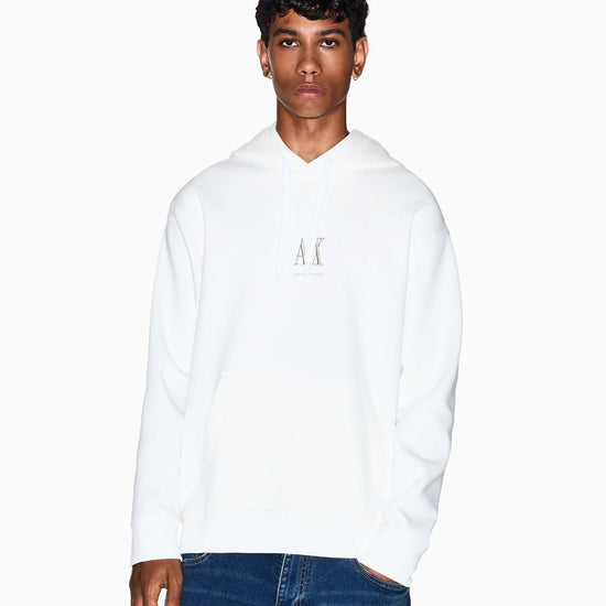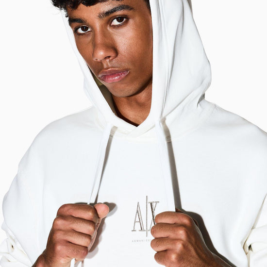 Armani Exchange Felpa Bianca Elegante Con Cappuccio Da Uomo Con Logo Ricamato