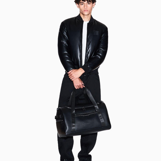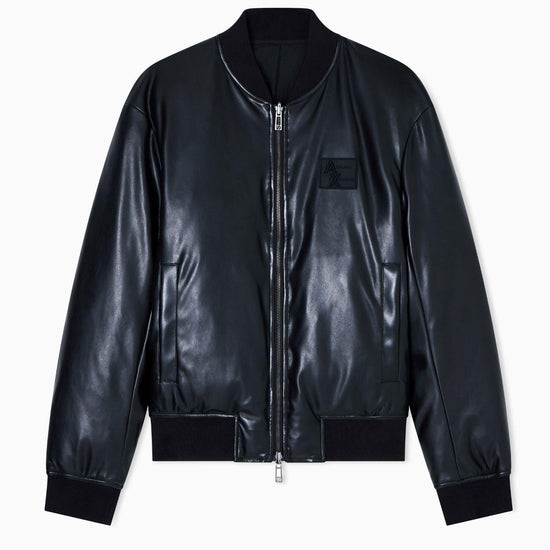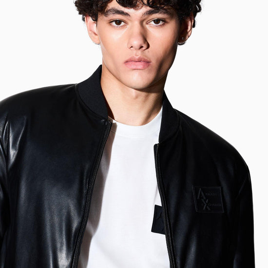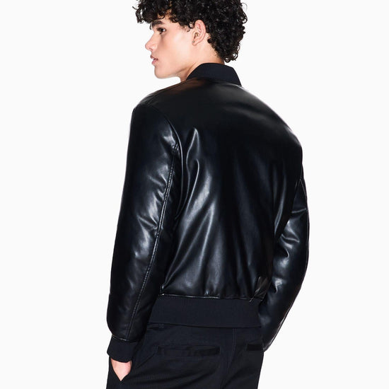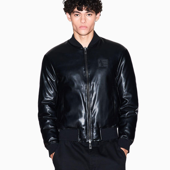 Giacca bomber in morbida ecopelle dal design audace e contemporaneo, perfetta per aggiungere carattere e stile ai tuoi look quotidiani. La texture lucida e i dettagli a coste su collo, polsini e orlo donano un tocco sportivo e moderno. Dotata di chiusura frontale con zip, due tasche laterali a filo e un taschino interno, è completata dal logo patch sul petto. Ideale per la mezza stagione, combina versatilità e personalità in un capo indispensabile. Tessuto esterno: 100% poliestere. Spalmatura esterna: 100% poliuretano. Fodera: 100% poliammide. Imbottitura: 100% poliestere. Dettagli in maglia: 97% poliestere, 3% elastan.