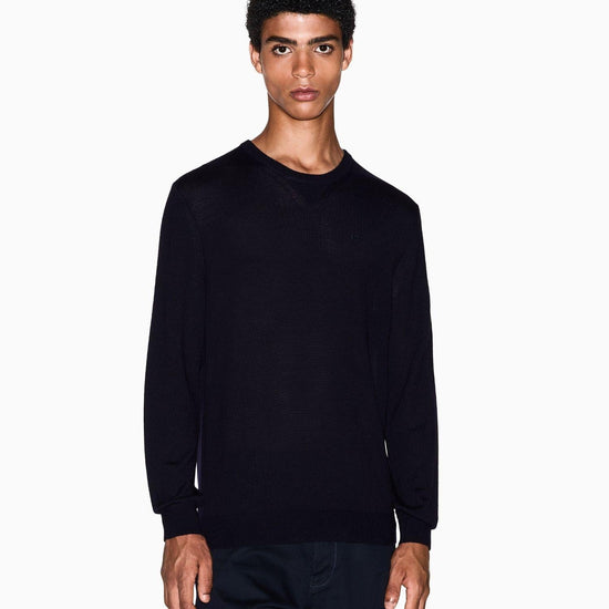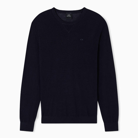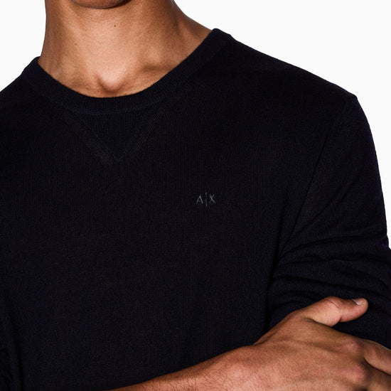 Armani Exchange Maglione Uomo Girocollo In Lana Vergine Blu Navy