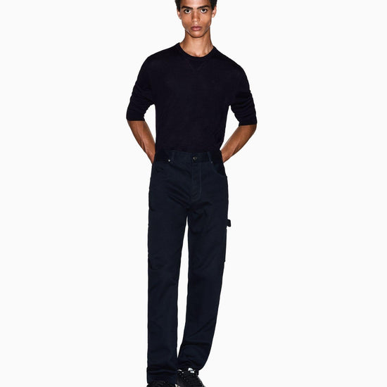 Caldo e versatile, questo maglione è il compagno perfetto per linverno. Realizzato in pura lana vergine, presenta scollo tondo, logo ricamato sul petto e profili a costine. Tessuto: 100% lana vergine. Dettagli in maglia: 83% lana, 15% poliammide, 2% elastan. Maglione girocollo in lana vergine con profili a costine. Lavabile con solventi simbolo F delicato. Lavabile con tetracloroetene e tutti i solventi con simbolo F processo delicato. Non usare lasciugatrice. Non asciugare in tamburo rotativo. Non usare candeggina. Il candeggio non è consentito; si consiglia di utilizzare detersivi per colori senza agenti sbiancanti per evitare di sbiadire i tessuti. Stirare con temperatura massima di 110°C. La stiratura a vapore può causare danni irreversibili.