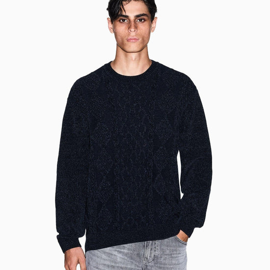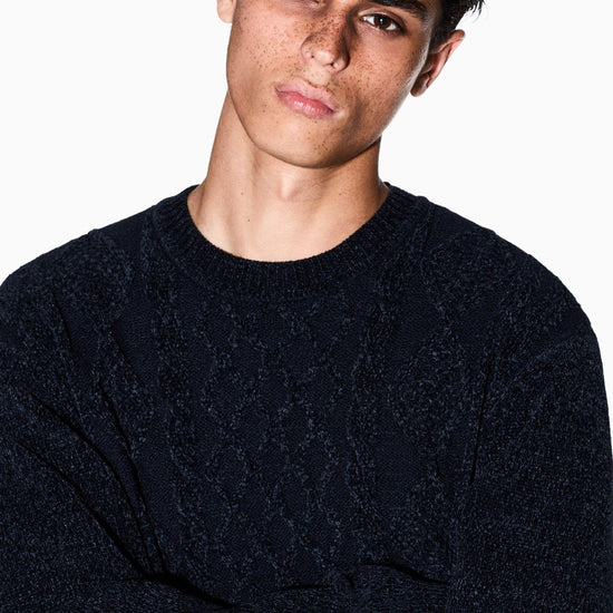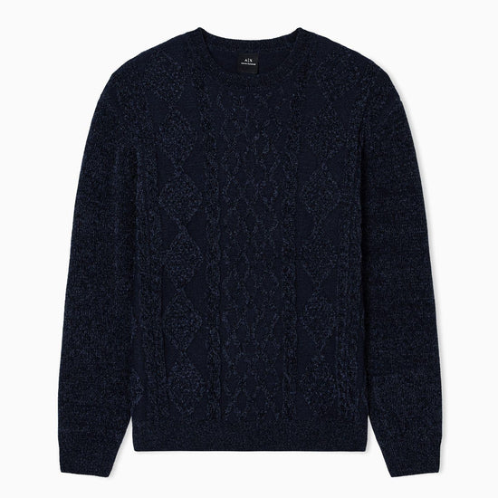 Armani Exchange Maglione Uomo a Lavorazione Intrecciata Blu Navy