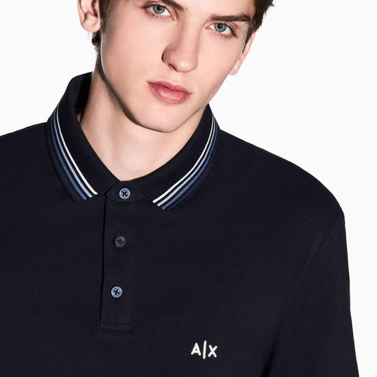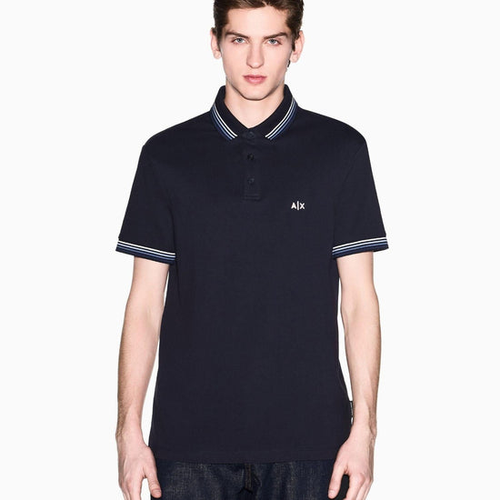 Armani Exchange Polo Uomo Blu Navy in Piquet di Cotone Traspirante