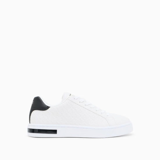 Sneaker stringata con tomaia stampata in saffiano e logo in rilievo su tutta la superficie. Logo a contrasto sul tallone. Sneakers stringate. Stampa saffiano. Logo in rilievo. Composizione: tomaia 100% poliestere; suola esterna 100% poliuretano termoplastico; prima spalmatura esterna 100% poliuretano; linguetta 100% poliestere; spalmatura linguetta 100% poliuretano; fodera principale 100% poliestere; fodera secondaria 100% poliestere; secondo rivestimento fodera 100% poliuretano; soletta 100% poliestere; suola 100% gomma.
