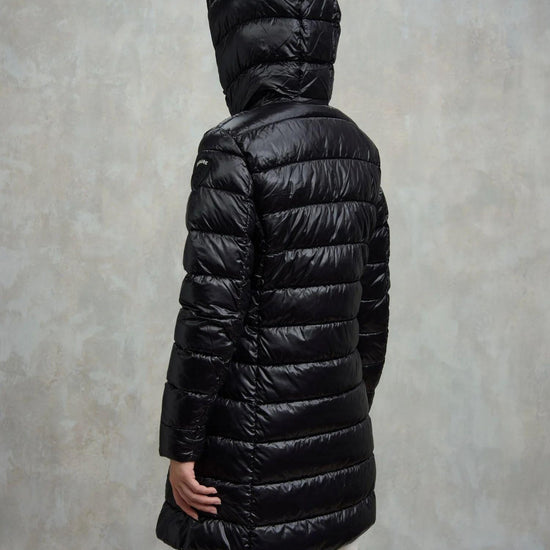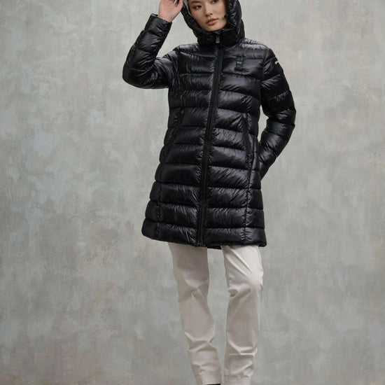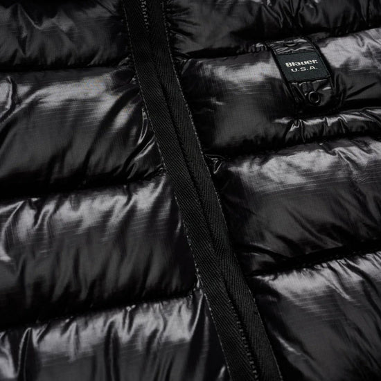 Giubbetto invernale lungo in nylon micro rip con cappuccio trapuntato a linee orizzontali, caratterizzato da imbottitura ecologica, colori moda e vestibilità sfiancata. Cappuccio fisso con coulisse. Tessuto con leggero motivo check. Foderato in contrasto colore. Imbottito con ovatta Sorona Aura sostenibile. Chiusura con zip nascosta e copri cursore sul collo. Tasche frontali con zip nascosta e copri cursore. Tasche interne, una con zip e una con velcro. Patch e passante con logo.