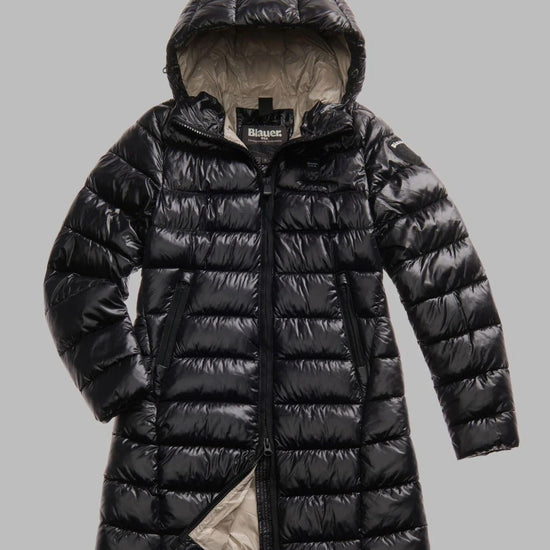 Giubbetto invernale lungo in nylon micro rip con cappuccio trapuntato a linee orizzontali, caratterizzato da imbottitura ecologica, colori moda e vestibilità sfiancata. Cappuccio fisso con coulisse. Tessuto con leggero motivo check. Foderato in contrasto colore. Imbottito con ovatta Sorona Aura sostenibile. Chiusura con zip nascosta e copri cursore sul collo. Tasche frontali con zip nascosta e copri cursore. Tasche interne, una con zip e una con velcro. Patch e passante con logo.