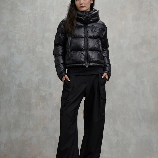 Giubbetto invernale in nylon micro rip idrorepellente con colletto alto removibile e imbottitura sostenibile Sorona Aura. Impuntura a righe orizzontali con interno a contrasto per eleganza e calore. Cappuccio removibile con zip. Realizzato in nylon micro rip con leggero motivo check. Foderato in nylon in contrasto colore. Chiusura con zip. Tasche frontali con automatici. Fondo manica con elastico, linguetta e doppio automatico. Coulisse regolabile sul fondo. Tasche interne con velcro. Patch e passante con logo.