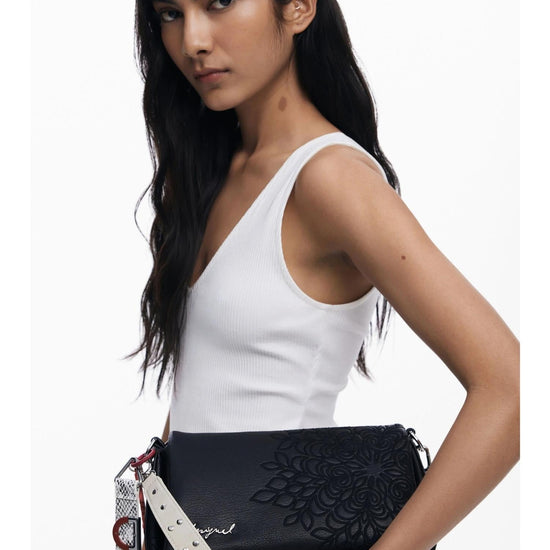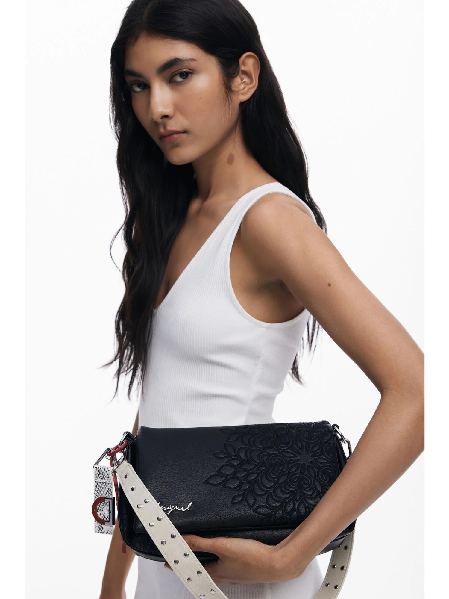 Desigual Borsa a tracolla effetto pelle ricamata media Donna Nero
