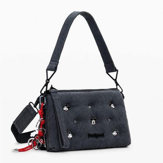 Borsa a tracolla in tessuto denim, con effetto trapuntato, dettaglio di borchie a forma di Mickey Mouse, manici intercambiabili e dettaglio di portachiavi rimovibile. Colore: Tinta unita. Stile: Tracolla. Tasca posteriore esterna. Chiusura: con cerniera. Vari scomparti interni. Tasca interna. Due manici intercambiabili. Portachiavi rimovibile. Dettaglio di borchie metalliche con volto di Mickey Mouse. Dettaglio del logo in applicazione metallica. Progettato a Barcellona. Licenza: Disney. Misure: 26 x 17,50 x 10 cm. BCI. Composizione esterna: 82% COTONE, 11% POLIESTERE, 7% VISCOSA. Composizione interna: 100% COTONE. Trimming fabric Material: 100% COTONE.