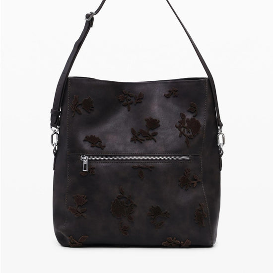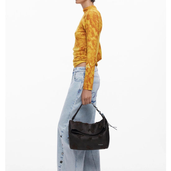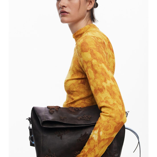 Borsa convertibile con dettagli folcloristici Donna Marrone