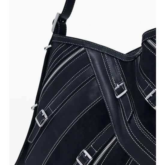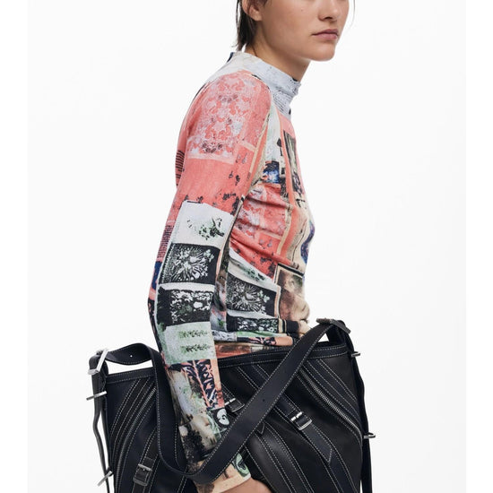 Borsa a spalla di medie dimensioni, in tessuto effetto pelle, con fibbie decorative e scomparti interni. Colore: tinta unita. Tasca posteriore esterna. Chiusura: a calamita. Vari scomparti interni. Manico regolabile. Fibbie decorative. Effetto pelle. Progettato a Barcellona. Misure: 40 x 7 x 27,6 cm. Composizione esterna: 100% poliuretano. Composizione interna: 100% poliestere. Trimming fabric material: 100% poliuretano.
