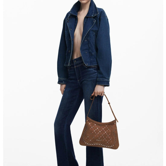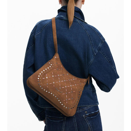 Desigual Borsa effetto pelle traforata media Donna Marrone