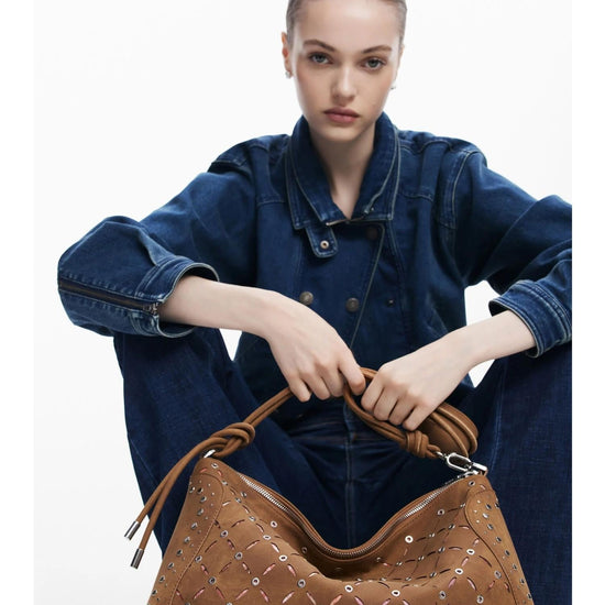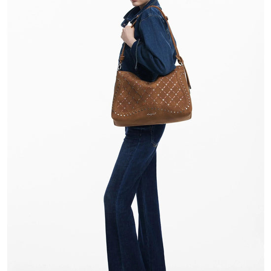 Desigual Borsa effetto pelle traforata media Donna Marrone