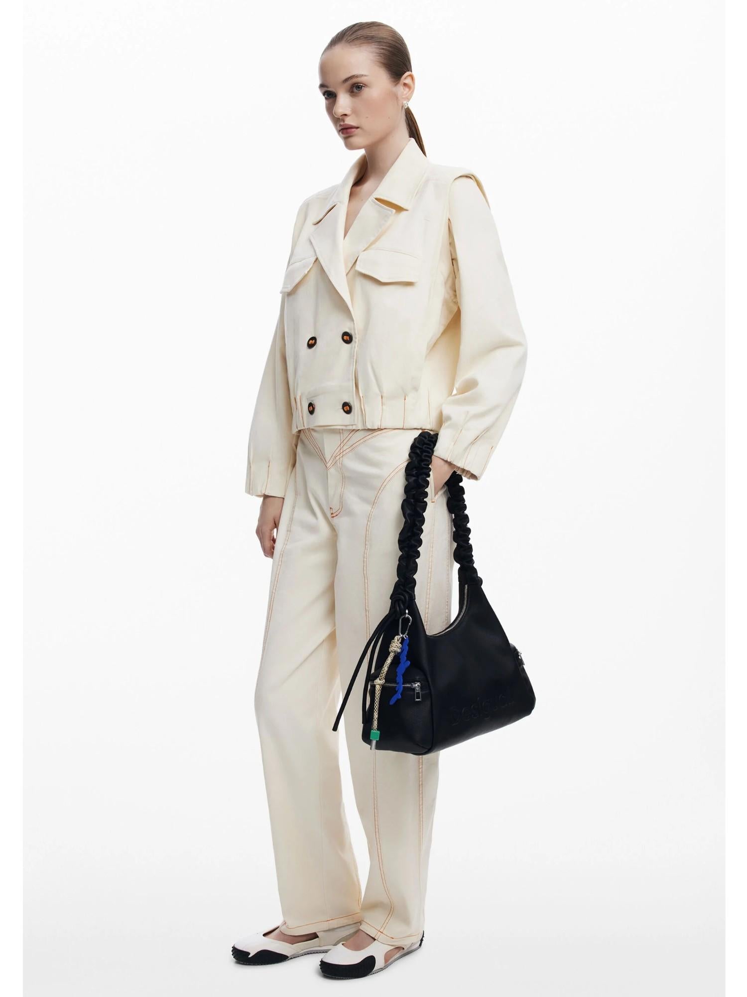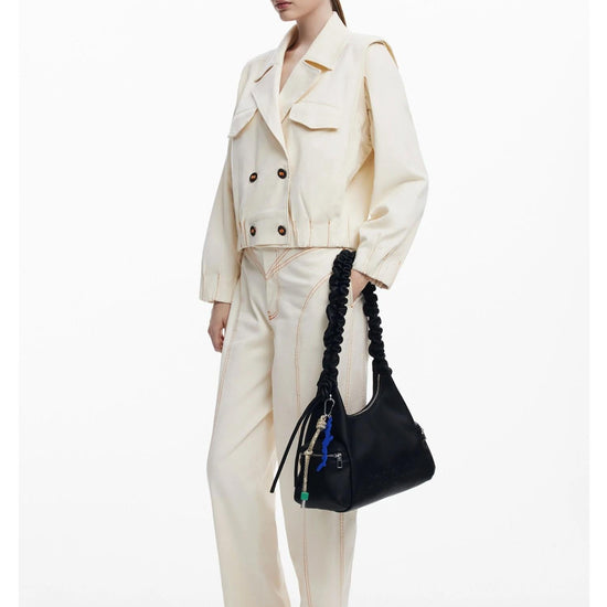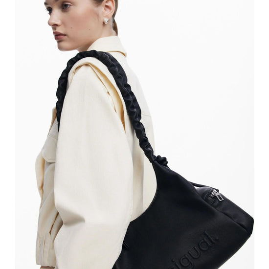 Desigual Borsa logo 3D con manico arricciato media Donna Nero