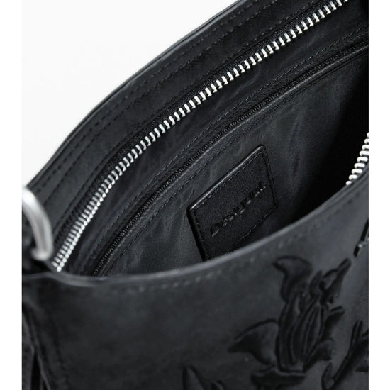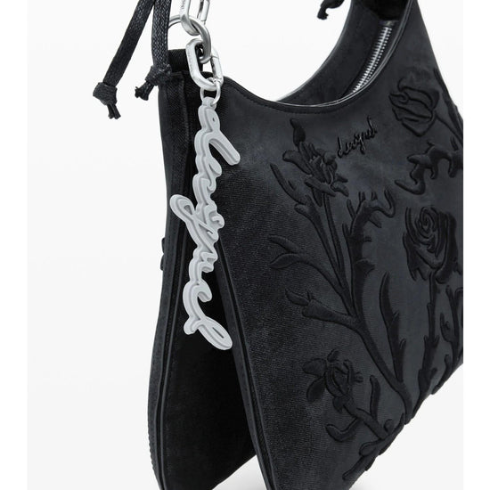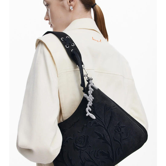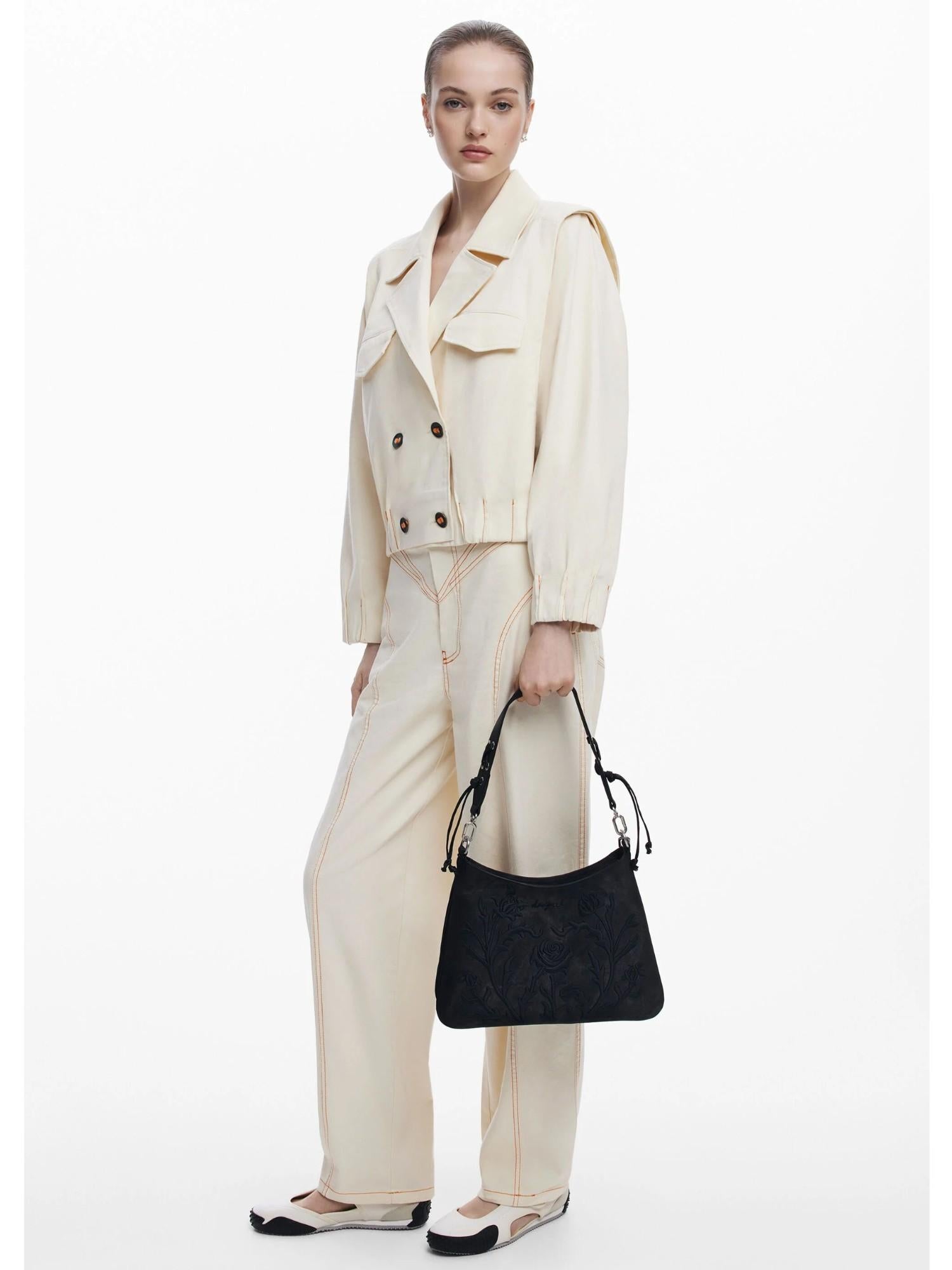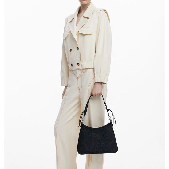 Borsa a spalla di piccole dimensioni, in tessuto effetto pelle, colore tinta unita, con incisioni effetto 3D e chiusura con cerniera. Colore: tinta unita. Tasca interna con cerniera. Chiusura: con cerniera. Manico regolabile. Rilievi 3D. Portachiavi rimovibile. Effetto pelle. Progettato a Barcellona. Misure: 32 x 2 x 20 cm. Composizione esterna: 100% poliuretano. Composizione interna: 100% poliestere. Trimming fabric material: 100% poliuretano.