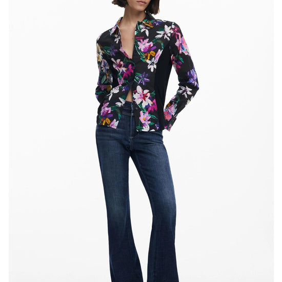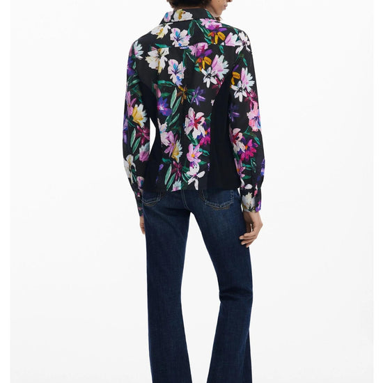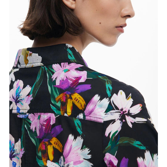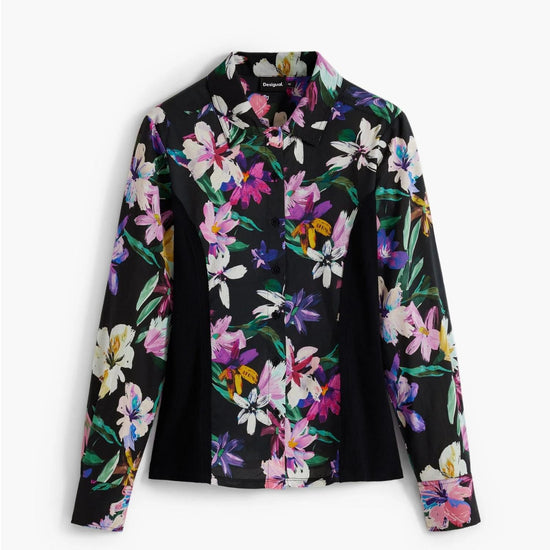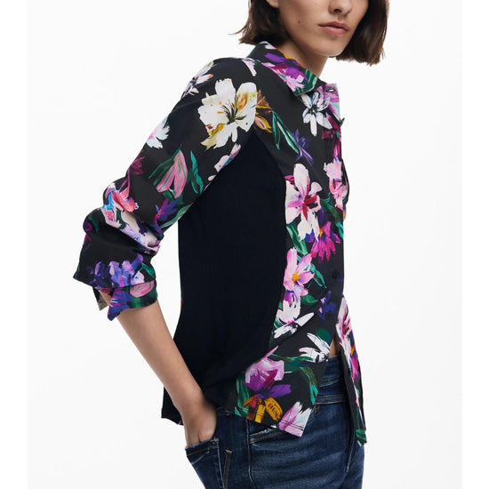 Camicia a fiori silhouette combinata Donna Nero