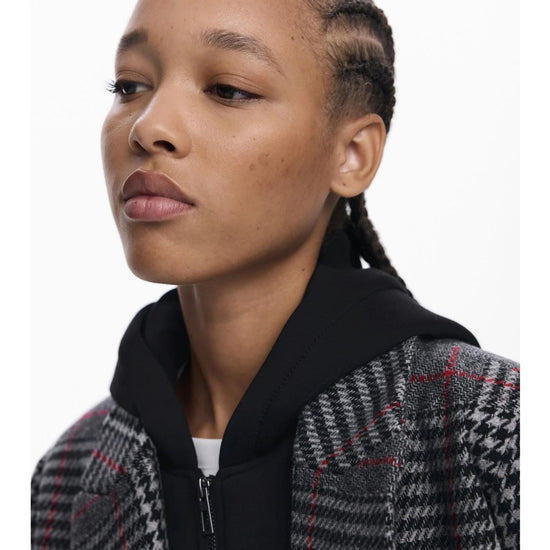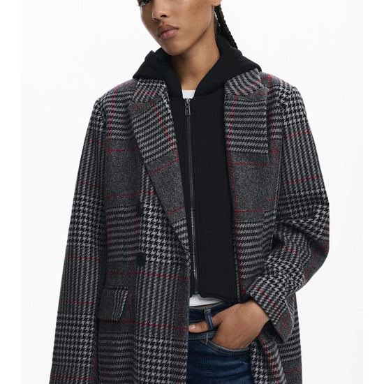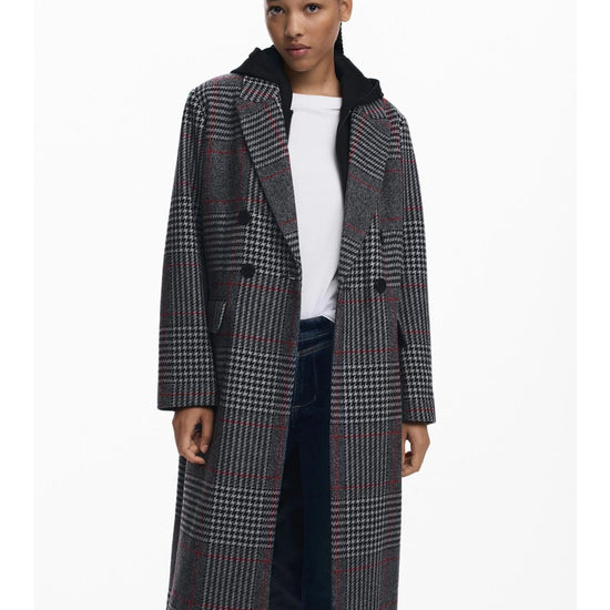 Cappotto midi in panno a taglio regolare con stampa tartan e cappuccio imbottito rimovibile. Quadro tartan. Fit regular. Con cappuccio. Manica lunga. Lunghezza midi. Tasche anteriori. Chiusura con bottone. Cappuccio imbottito rimovibile. Realizzato con materiali sostenibili. Collezione AW25. Progettato a Barcellona. Tessuto in poliestere riciclato. Misure modello: altezza 179 cm, vita 59 cm, fianchi 88 cm. Taglia modello: M. Composizione esterna: 48% poliestere, 38% lana, 9% viscosa, 3% poliammide, 1% elastan, 1% PAC. Composizione interna: 52% poliestere, 48% viscosa.