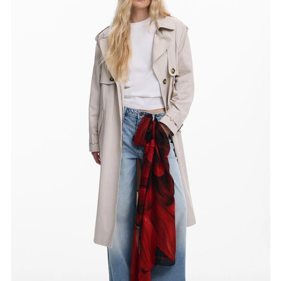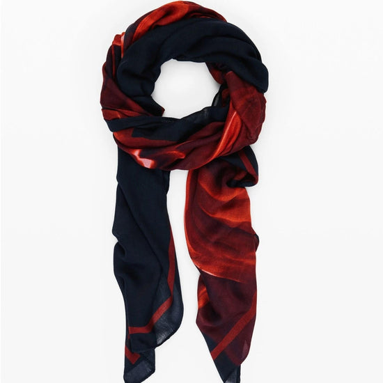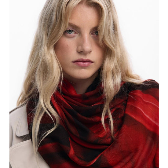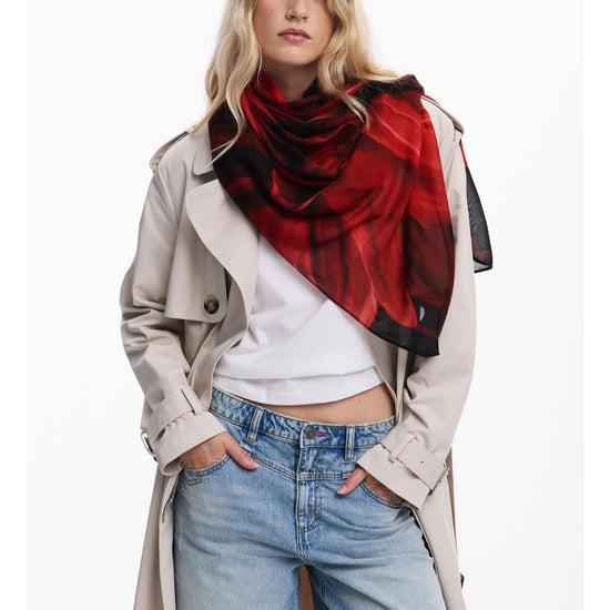 Grande foulard rettangolare con stampa di grande fiore in tonalità rosse su sfondo nero. Colore: Multicolore. Rettangolare. Stampa di grande fiore. Collezione AW25. Progettato a Barcellona. Misure: 80 x 180 cm. Composizione esterna: 100% VISCOSA.