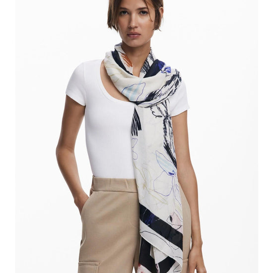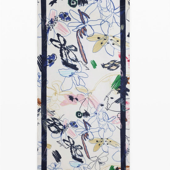 Grande foulard rettangolare a tinta unita con stampa di tratti floreali e loghi colorati. Stampa Arty. Rettangolare. Scomparto interno. Collezione AW25. Progettato a Barcellona. Misure: 80 x 180 cm. Composizione esterna: 100% VISCOSA.