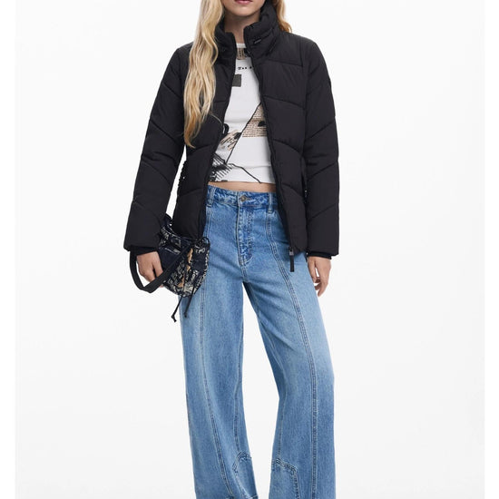 Desigual Giacca Imbottita con Cintura Donna Nera