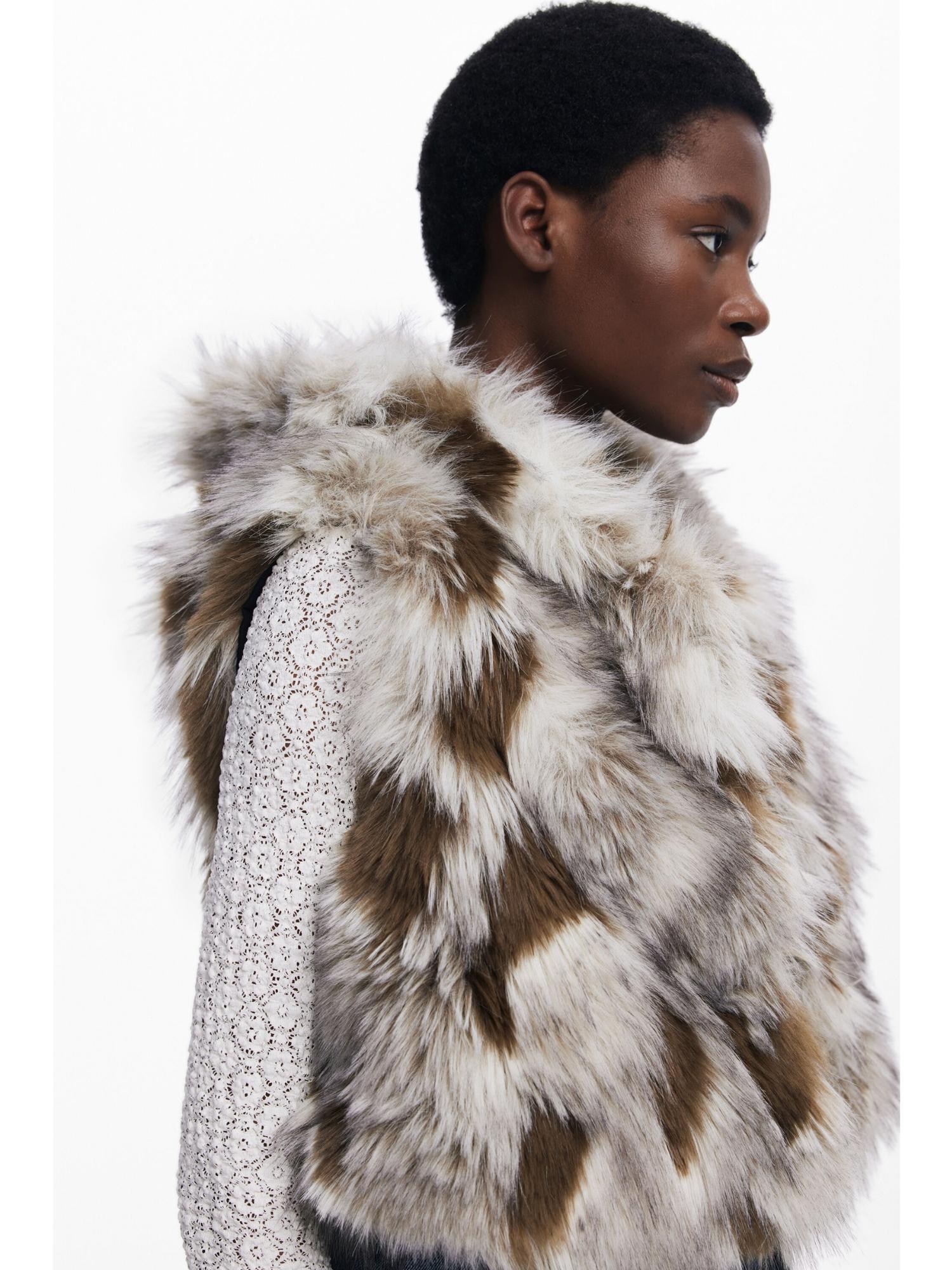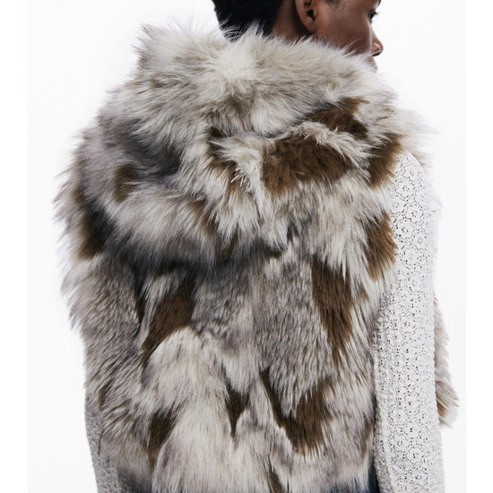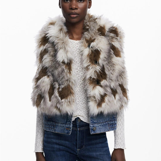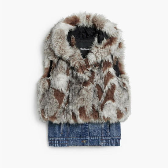 Desigual Gilet di Jeans con Pelliccia Sintetica Donna