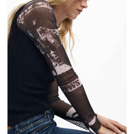 Desigual Maglietta con maniche in chiffon Donna Nero