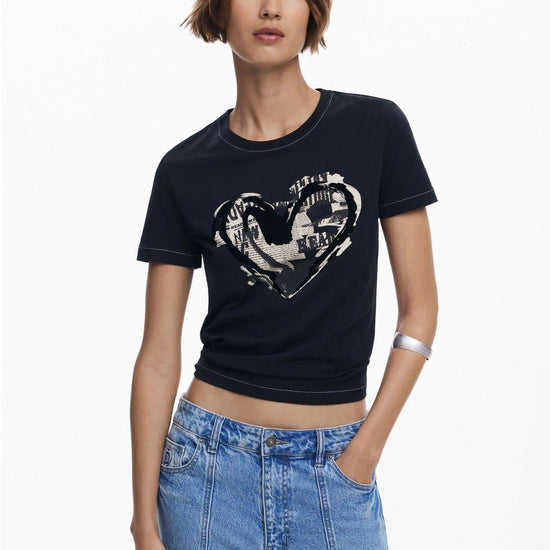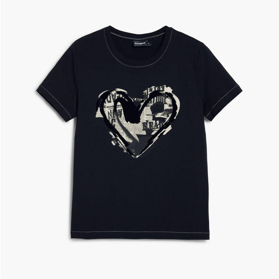 Desigual Maglietta cuore giornale Donna Nero