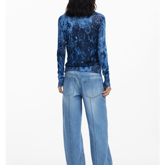 Cardigan sottile aderente con abbottonatura frontale e scollo rotondo in tessuto con finitura lucida. Stampa arty. Vestibilità slim. Collo rotondo. Manica lunga. Chiusura con bottone. Finitura lucida. Tessuto aderente. Collezione AW25. Progettato a Barcellona. Misure modello: altezza 177 cm, vita 61 cm, fianchi 87 cm. Taglia modello: S. Composizione esterna: 86% viscosa, 10% poliammide, 4% metallised fiber.