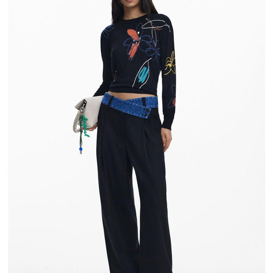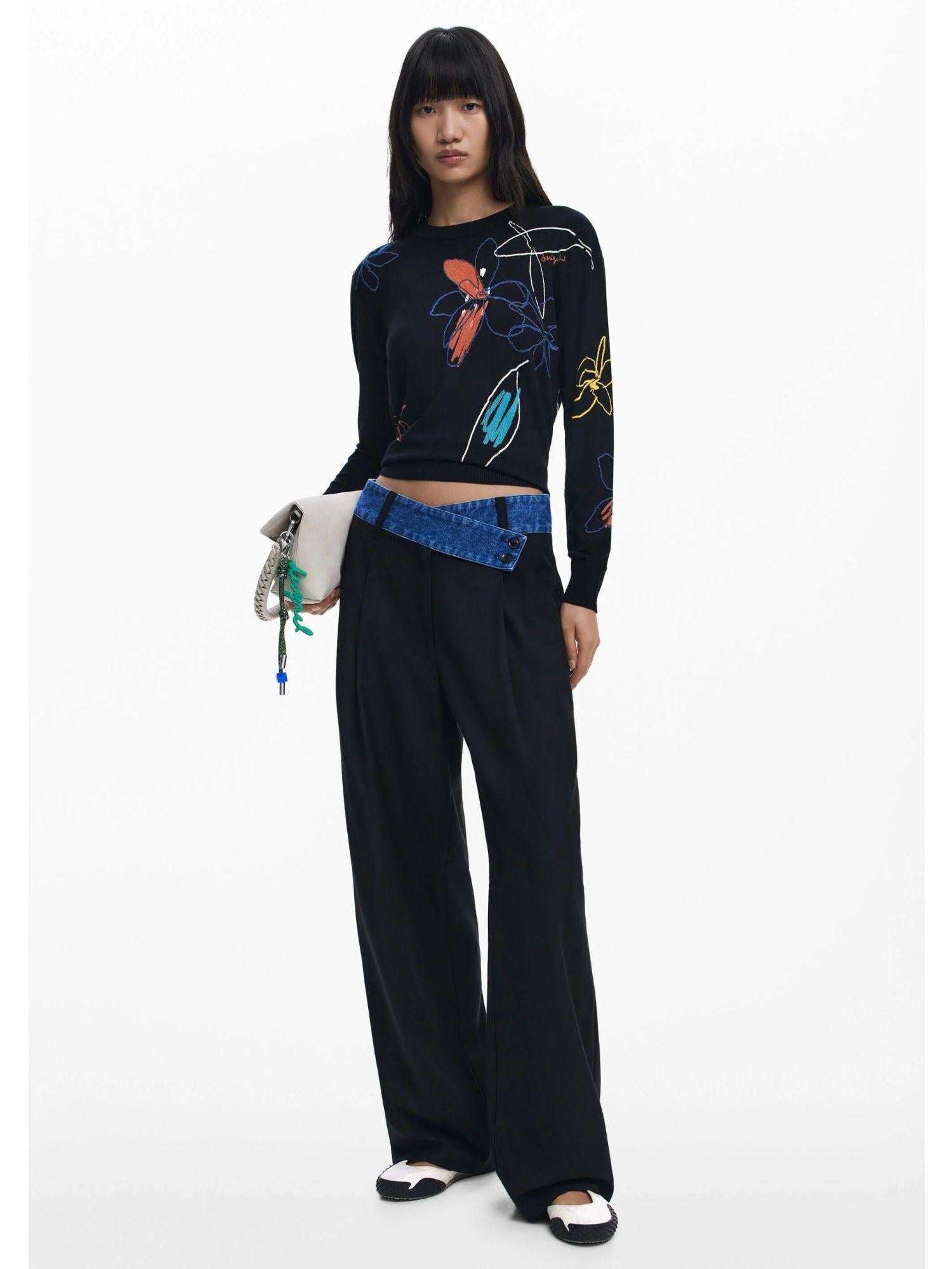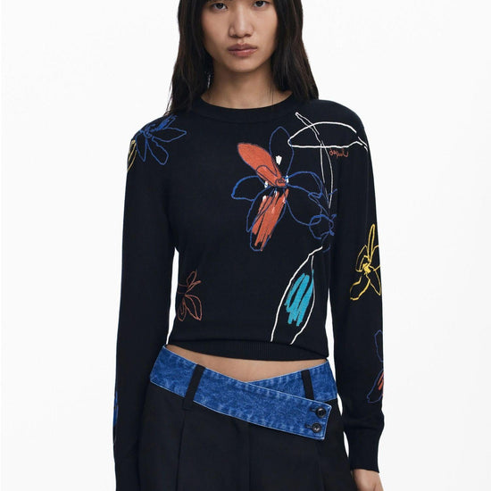 Desigual Maglione leggero con tratti floreali Donna Nero