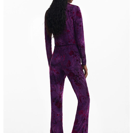 Pantaloni fluidi a zampa con texture Donna Viola