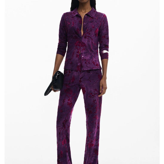 Desigual Pantaloni fluidi a zampa con texture Donna Viola