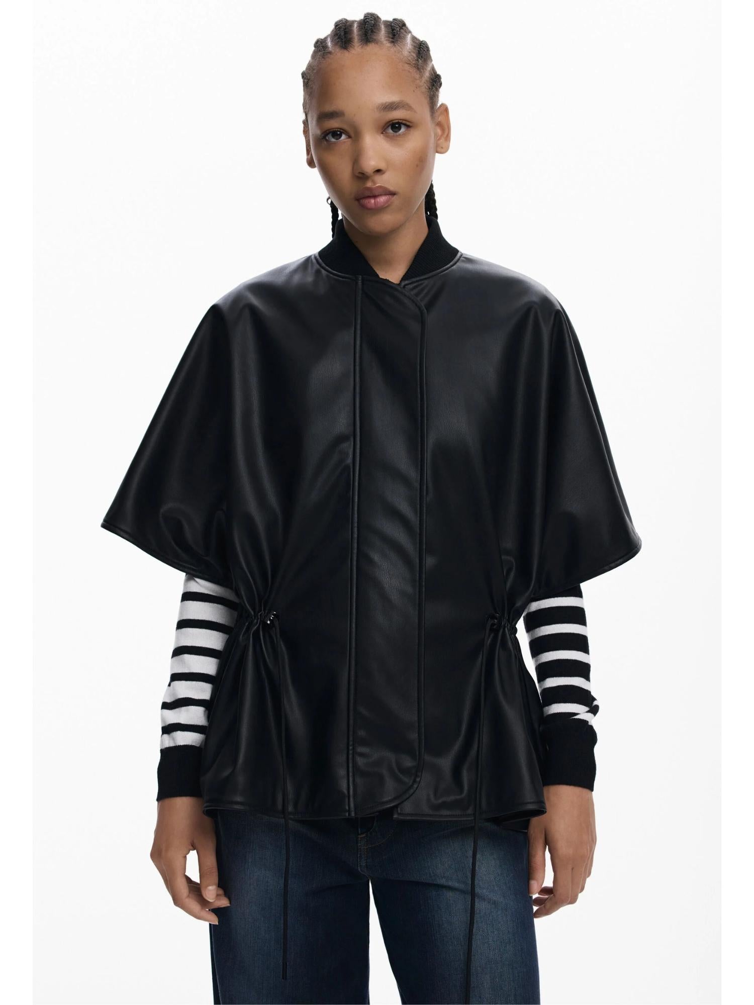 Poncho in tessuto effetto pelle, con elastico regolabile in vita, chiusura con cerniera e collo rotondo a maglia con rilievi 3D sulla schiena. Effetto pelle. Fit: Regular. Collo a maglia. Elastico regolabile in vita. Chiusura con cerniera. Dettagli effetto 3D sulla schiena. Dettagli a maglia. Collezione AW25. Progettato a Barcellona. Taglia unica. Composizione esterna: 100% POLIURETANO. Composizione interna: 100% POLIESTERE