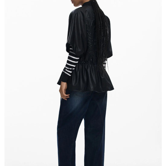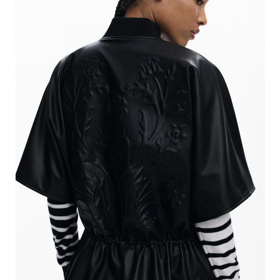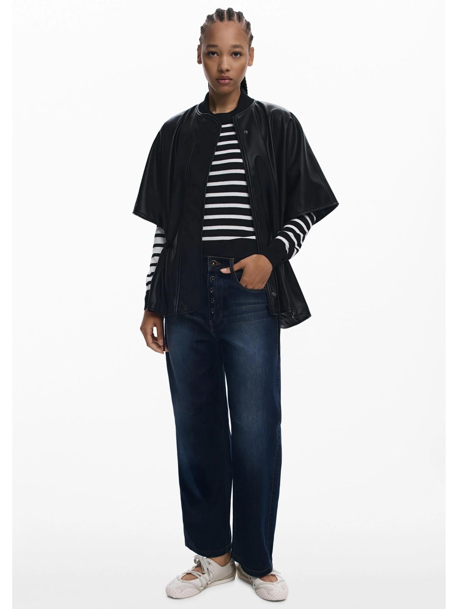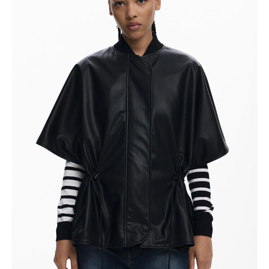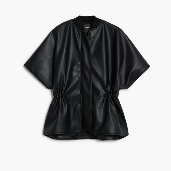 Poncho in tessuto effetto pelle, con elastico regolabile in vita, chiusura con cerniera e collo rotondo a maglia con rilievi 3D sulla schiena. Effetto pelle. Fit: Regular. Collo a maglia. Elastico regolabile in vita. Chiusura con cerniera. Dettagli effetto 3D sulla schiena. Dettagli a maglia. Collezione AW25. Progettato a Barcellona. Taglia unica. Composizione esterna: 100% POLIURETANO. Composizione interna: 100% POLIESTERE