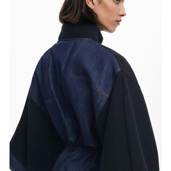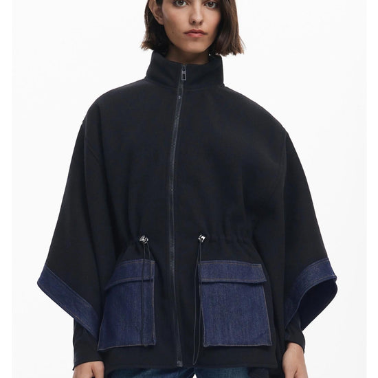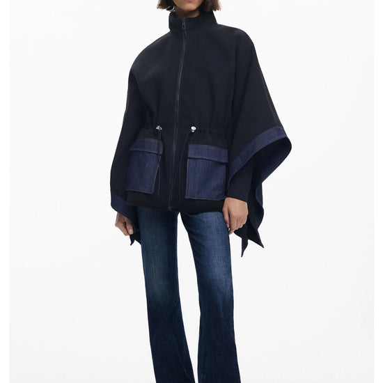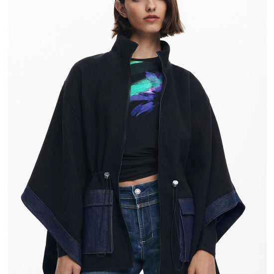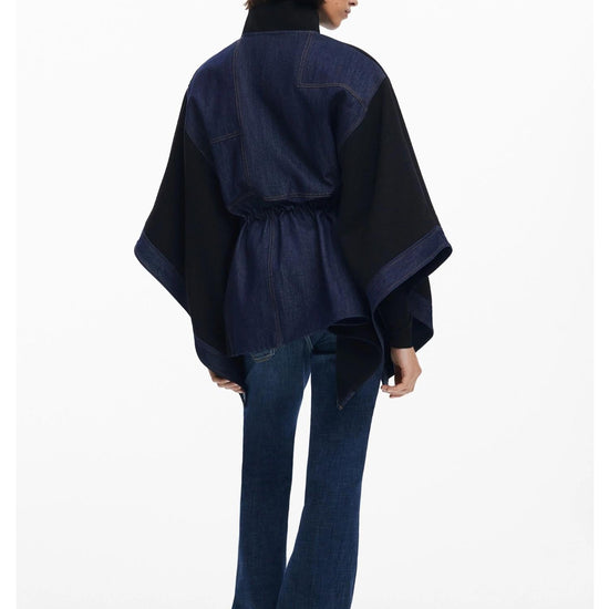 Poncho bicolore con elastico regolabile in vita e tasche frontali in denim combinato con parti imbottite. Fit regular. Elastico regolabile in vita. Tasche anteriori. Chiusura con cerniera. Combinazione di tessuti. Taglio ampio. Collezione AW25. Progettato a Barcellona. Taglia unica. Composizione esterna: 74% Poliestere, 26% Cotone.