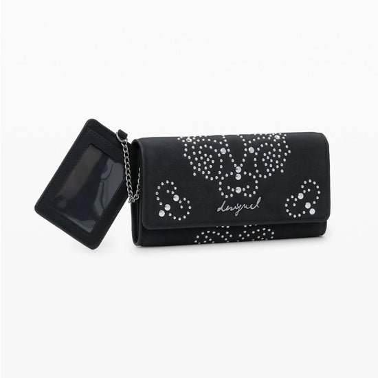Portafoglio grande allungato in tessuto effetto pelle con borchie metalliche decorative e portatessere estraibile. Colore: tinta unita. Chiusura: con cerniera. Molti scomparti interni. Dettagli in borchie metalliche. Portatessere estraibile. Effetto pelle. Progettato a Barcellona. Misure: 19 x 3 x 9,5 cm. Composizione esterna: 100% poliuretano. Composizione interna: 100% poliestere.