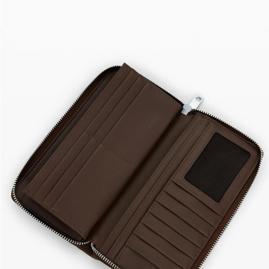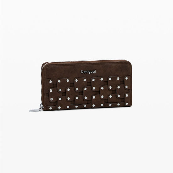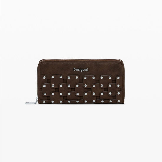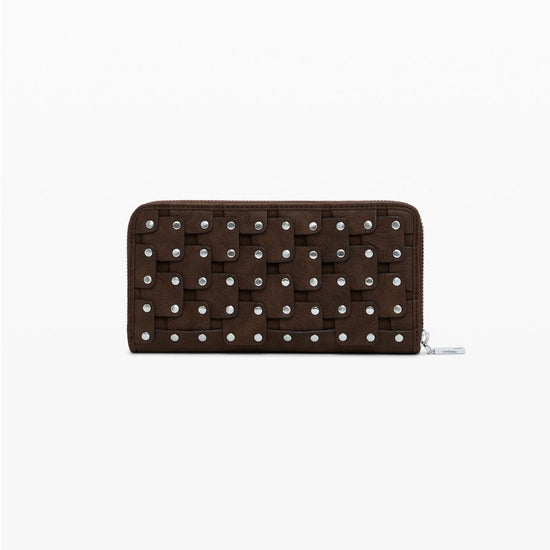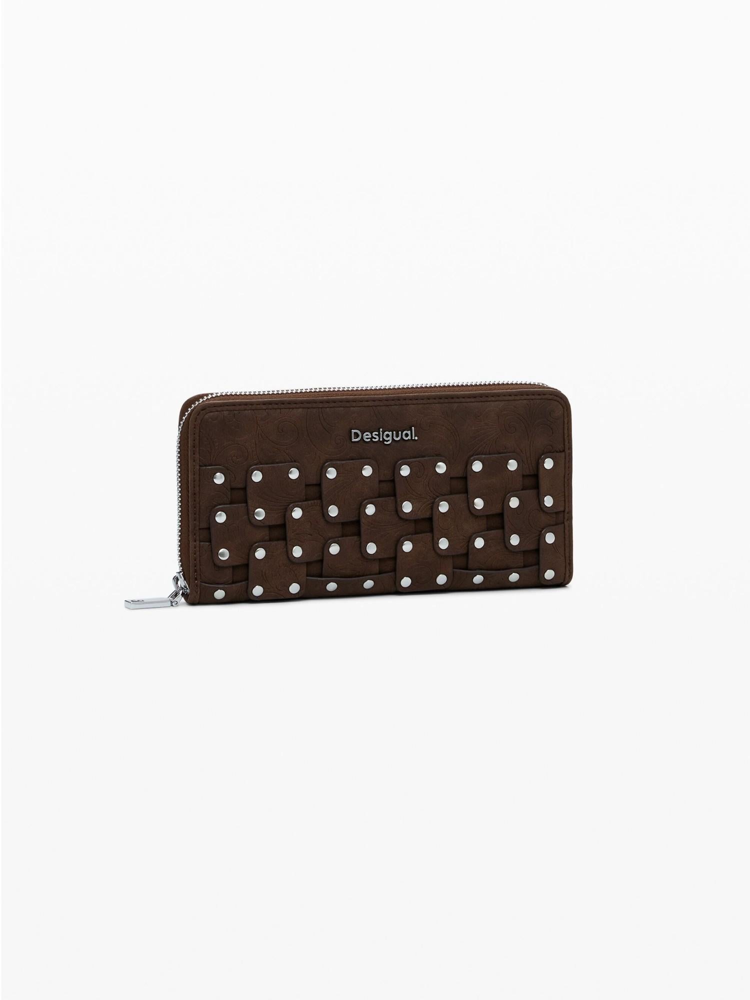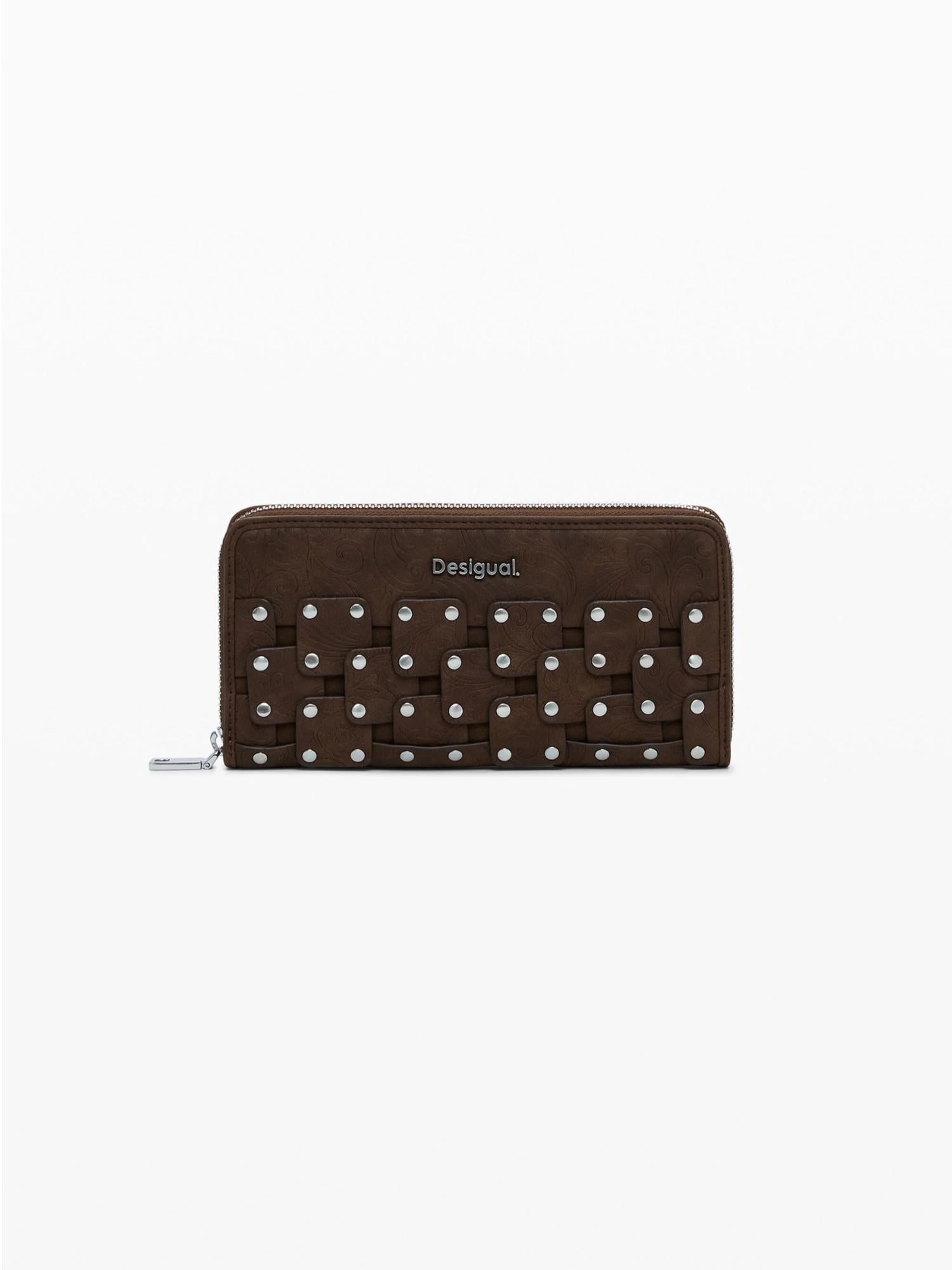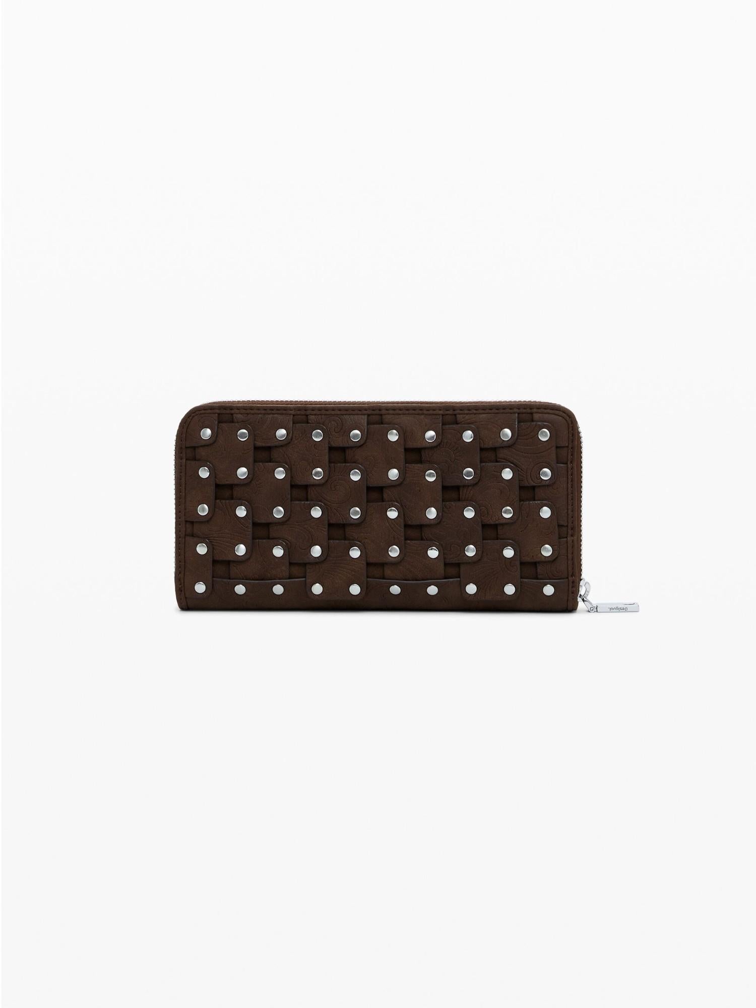 Portamonete grande effetto pelle con borchie Donna Marrone