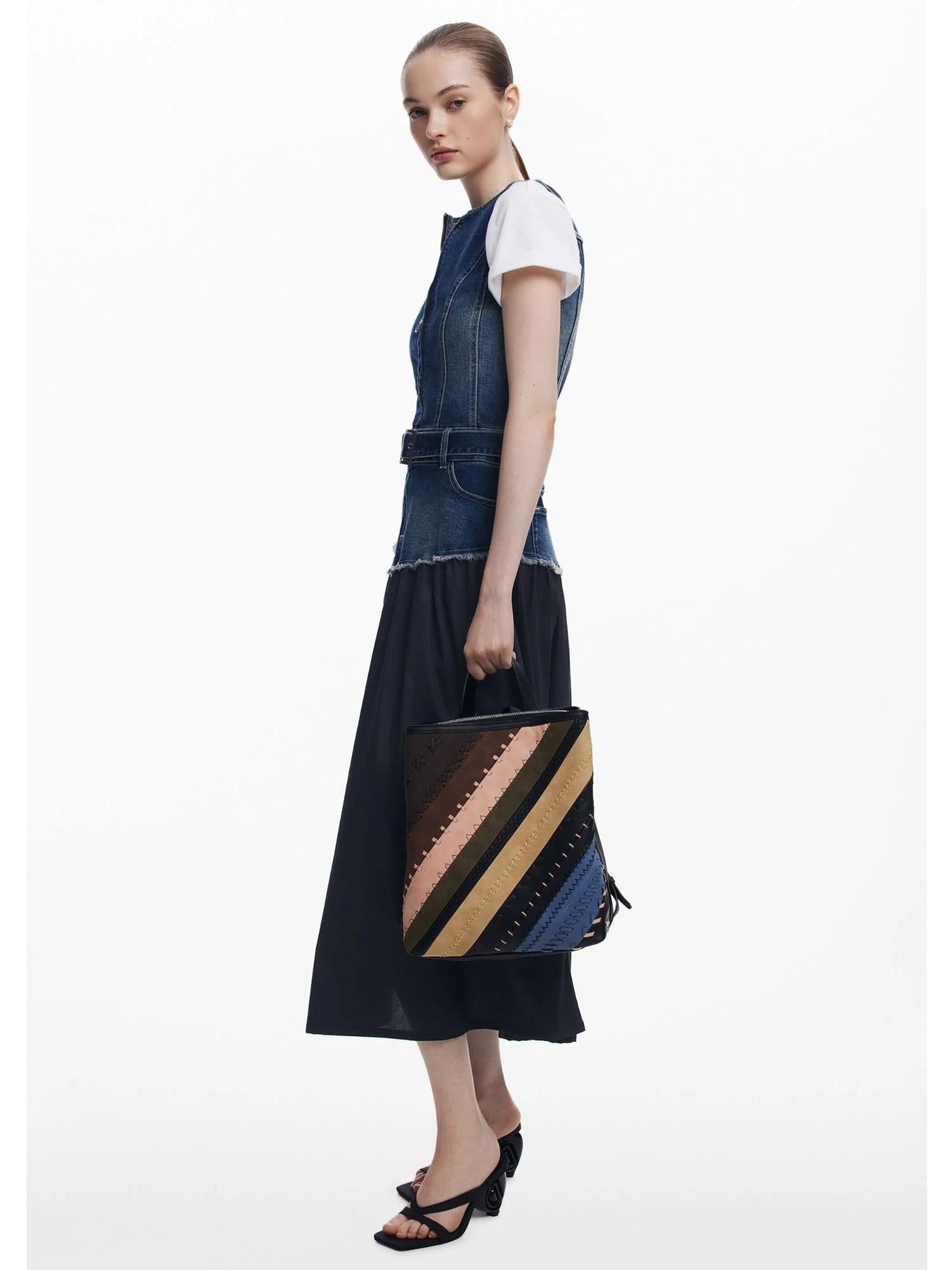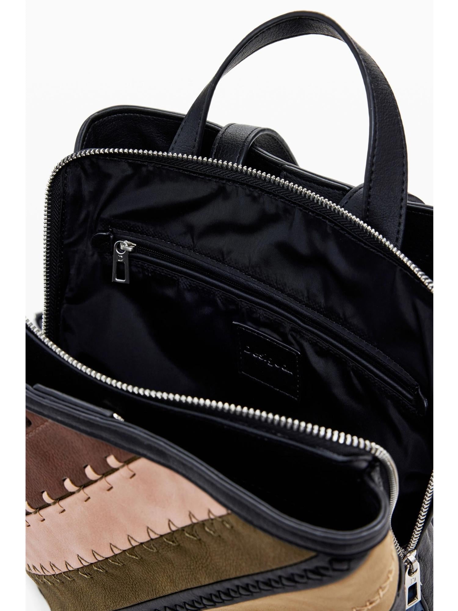 Zaino medio in combinazione di diversi tessuti effetto pelle, con cuciture e intrecci e vari scomparti interni. Combinazione di tessuti. Punti e trecce. Tasca posteriore esterna. Chiusura: con cerniera. Vari scomparti interni. Combinazione di colori. Capacità: 11,22 l. Effetto pelle. Progettato a Barcellona. Misure: 27,50 x 12 x 34 cm. Composizione esterna: 100% POLIURETANO. Composizione interna: 100% POLIESTERE. Trimming fabric Material: 100% POLIURETANO