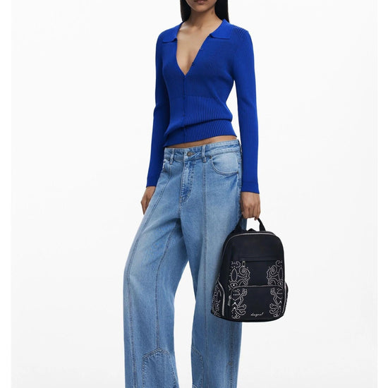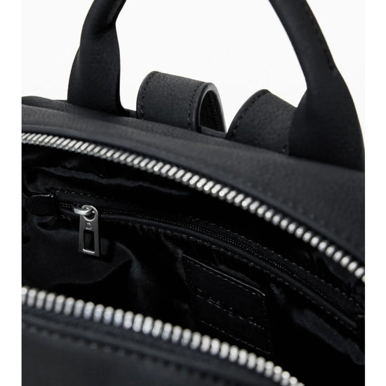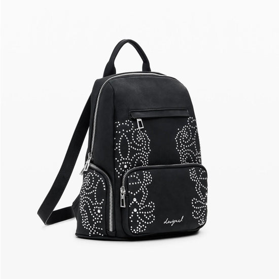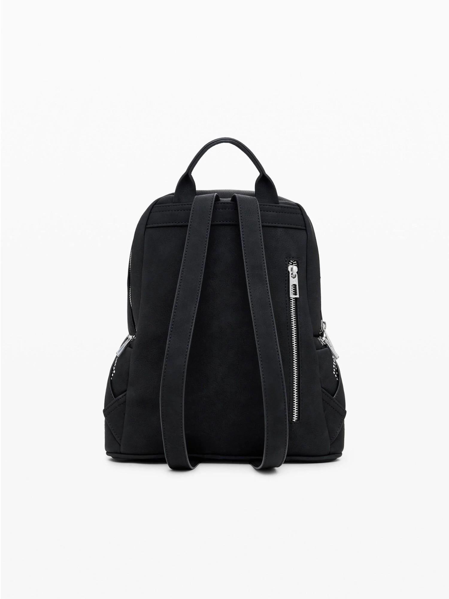 Zaino piccolo effetto pelle, con molteplici tasche esterne e dettagli di borchie metalliche. Molteplici tasche esterne. Tasca posteriore esterna. Chiusura: con cerniera. Tasca interna con cerniera. Dettaglio del logo in applicazione metallica. Capacità: 10,13 l. Effetto pelle. Progettato a Barcellona. Misura: 26,70 x 12,30 x 30,50 cm. Composizione esterna: 100% POLIURETANO. Composizione interna: 100% POLIESTERE. Trimming fabric Material: 100% POLIURETANO.