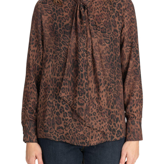 Blusa con foulard incorporato, maniche lunghe, fantasia animalier