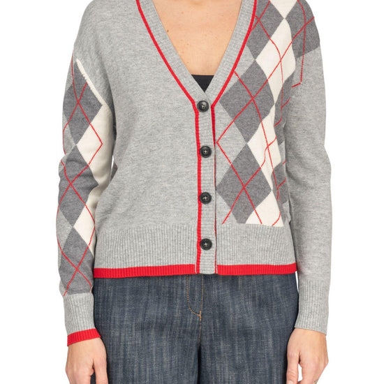 Cardigan con scollo a V fantasia a scacchi