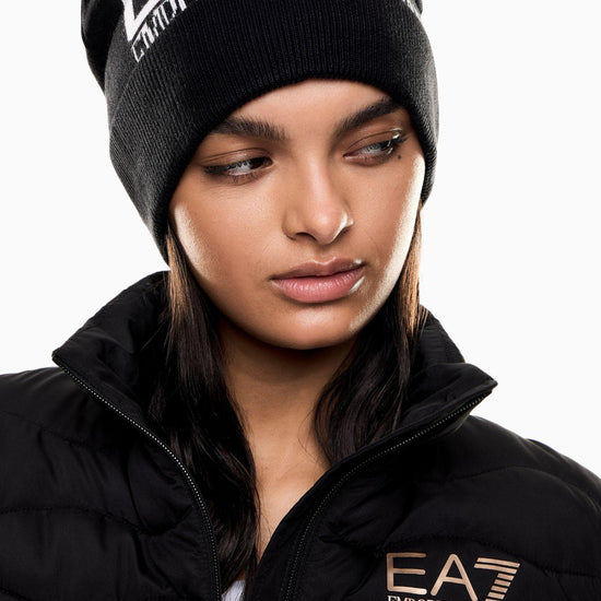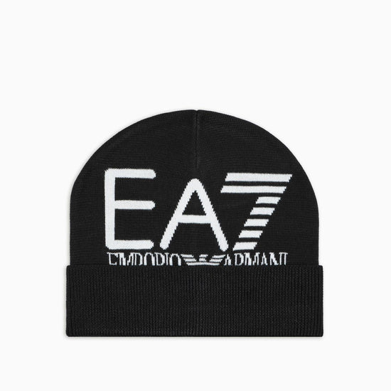 EA7 Emporio Armani Beanie Visibility con maxi logo EA7 Nero Logo Bianco