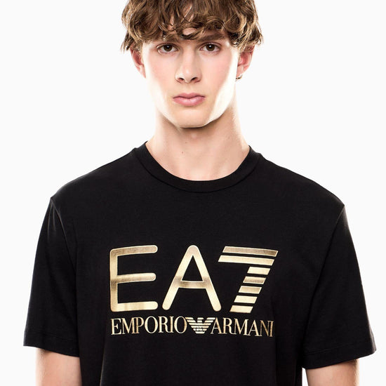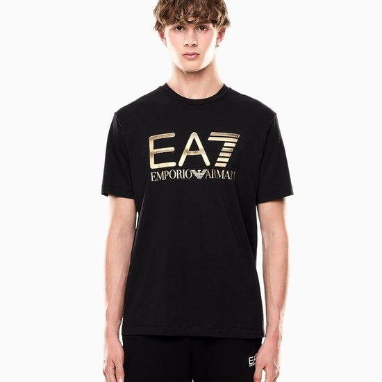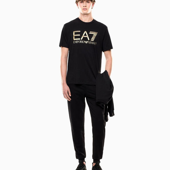 EA7 Emporio Armani T-shirt Logo Series in cotone con maxi logo Uomo Nero